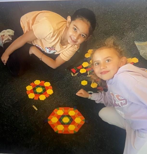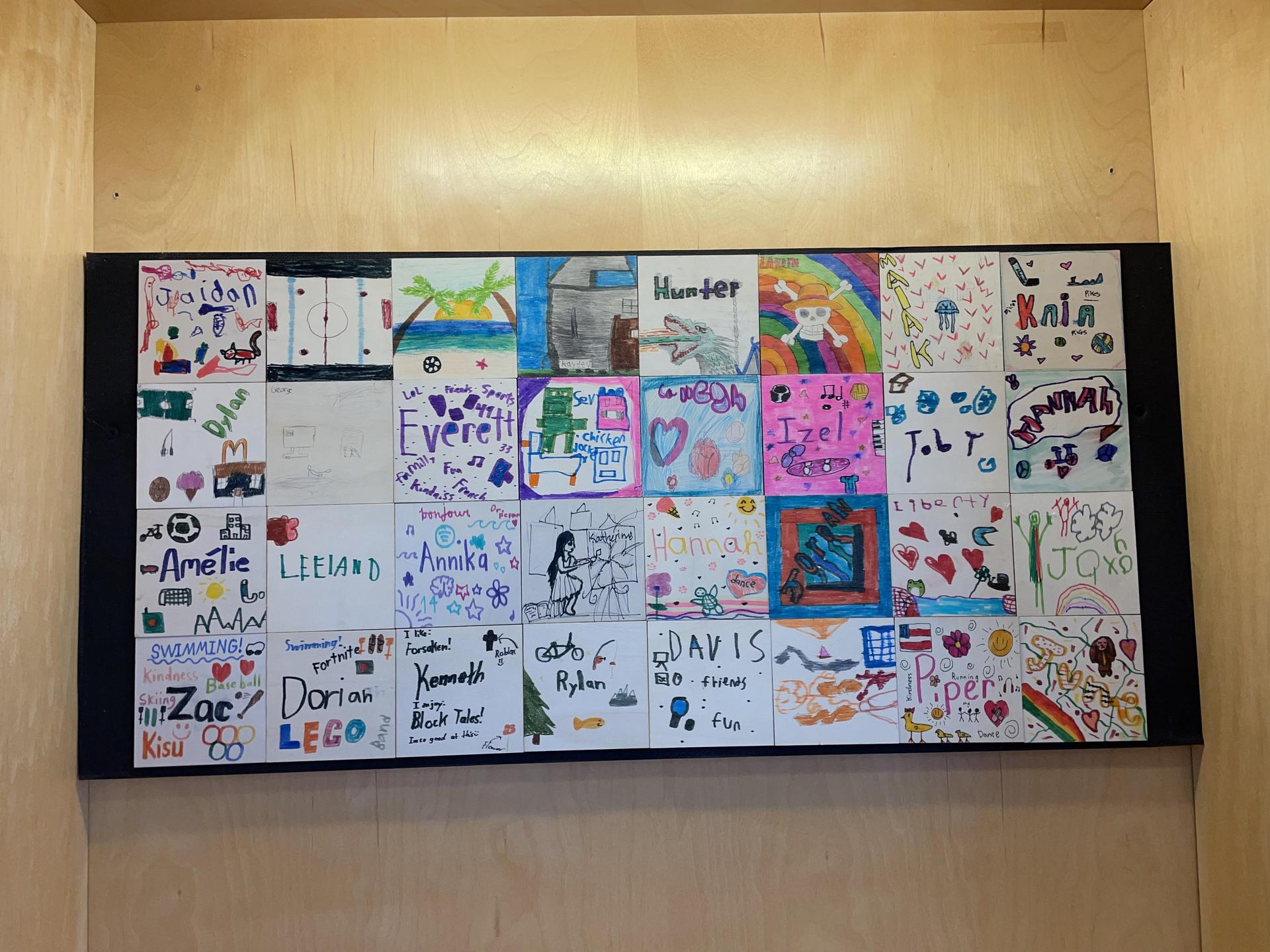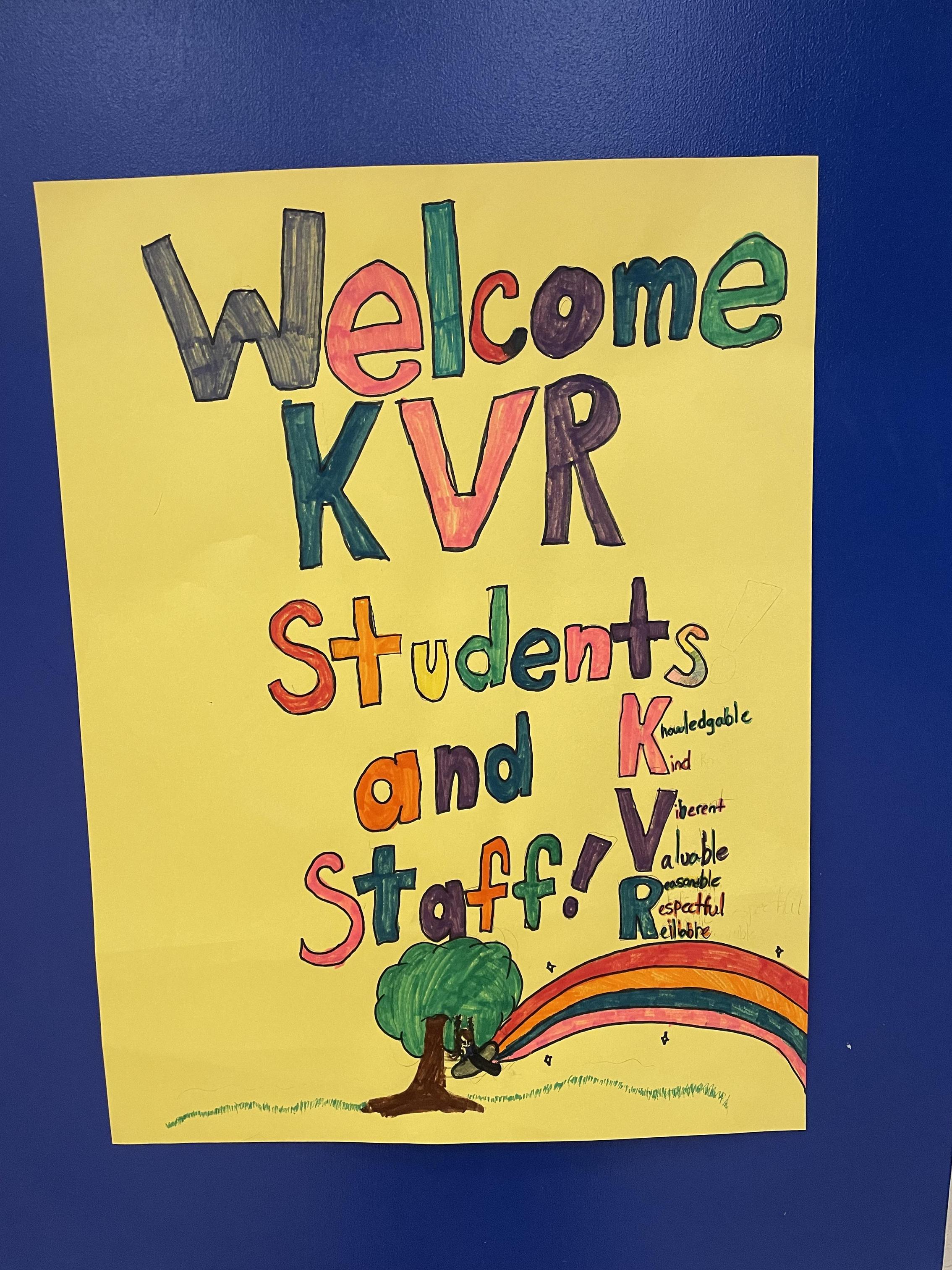 KVRE has welcome over 550 students from 13 different school. As part of our transition, a group of KVR Middle and Carmi teachers organized a connection activity of making tiles, which was conducted in spring of 2025. All incoming KVRE students were invited to an orientation day in June. Each student created a wooden tile. On the front, students drew who they were or what was meaningful to their identity. On the back, they wrote a goal for the 2025-2026 school year. Administration put these tiles together into an art display that was in place for the first day of school. This way, each student already had a “piece” of themselves in their new school to show they belong to our community.