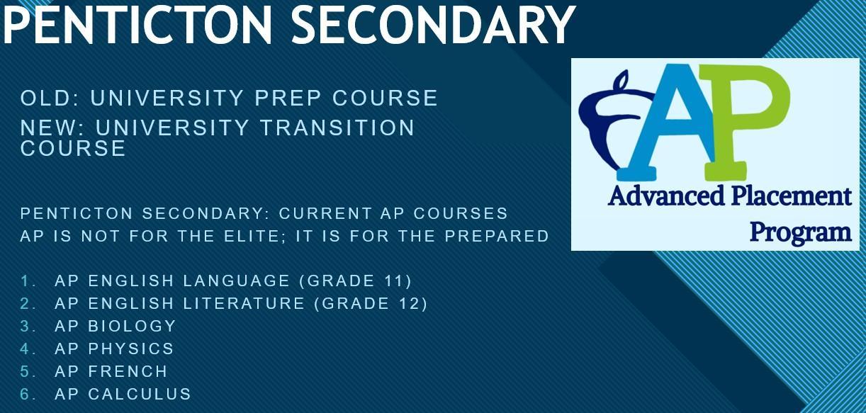 The Advanced Placement Program continues to thrive at Penticton Secondary School, reflecting the district’s commitment to empowering all learners to thrive as outlined in the SD67 Strategic Plan. This year, Pen High offers six Advanced Placement courses: AP English Language, AP English Literature, AP Biology, AP Physics, AP French, and AP Calculus. These courses provide students with enriched academic opportunities that challenge them, deepen critical thinking, and prepare them for post secondary learning. More than 160 students are registered to write AP exams in May, demonstrating strong student interest in rigorous academic pathways. This aligns closely with the Strategic Plan’s focus on high quality learning, student engagement, and preparing graduates for successful transitions beyond secondary school. The success of the AP Program highlights the dedication of both staff and students to creating a learning environment where academic excellence and student empowerment are prioritized.